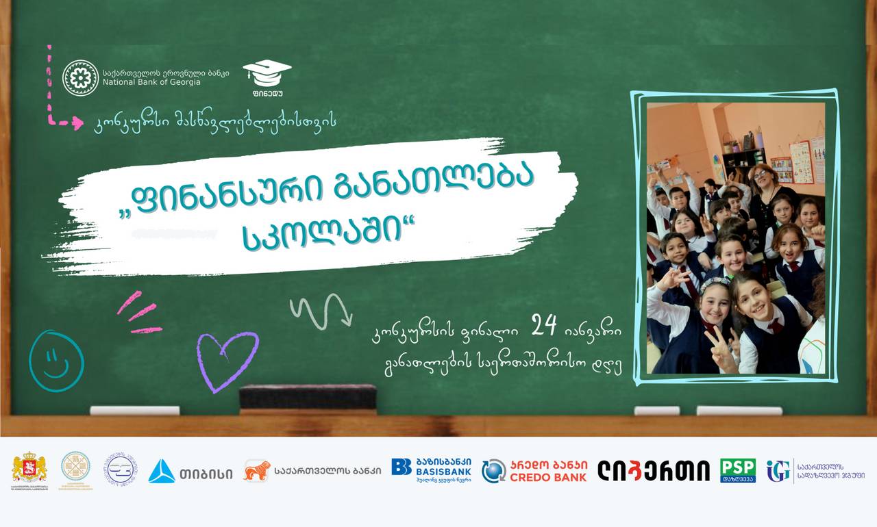 Under the organization of National Bank of Georgia, Financial education platform - www.finedu.gov.ge (hereinafter – Finedu), Ministry of Education and Science, LEPL Insurance State Supervision Service of Georgia and the engagement and support of Forum of Georgian Civil Education Teachers, JSC Bank of Georgia, JSC TBC Bank, JSC Basis Bank, JSC Liberty Bank, JSC Credo Bank, JSC PSP Insurance and JSC Insurance Group of Georgia, the competition has been announced for school teachers".